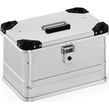 sehr robuste Transportboxen aus 1 mm starkem Aluminiumblech · leicht, stabil und formbeständig durch umlaufende Sicken · korrosions-, witterungs- und temperaturbeständig · 4 robuste Stapelecken aus Nylon/Polyester zum sicheren und platzsparenden Stapeln · umlaufende Gummidichtung im Kastenprofil zum Schutz vor Staub und Wasser · zwei Fangbänder am Deckel verhindern ein Ausreißen der Scharniere · bei den Ausführungen 9000 447 966 und 9000 447 968 sind Boden und Deckel zusätzlich mit Aluprofilen verstärkt · selbsteinklappende Sicherheitshandgriffe, kunststoffummantelt für bequemenTransport · stabile Klapphebelverschlüsse mit Bohrungen für Vorhängeschloss · vorbereitet für die Montage von Zylinderschlössern